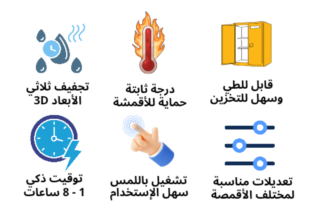يعمل بتقنية توزيع الهواء الساخن 360° لتجفيف جميع القطع بالتساوي، دون تلف الأقمشة أو تجعدها.✅