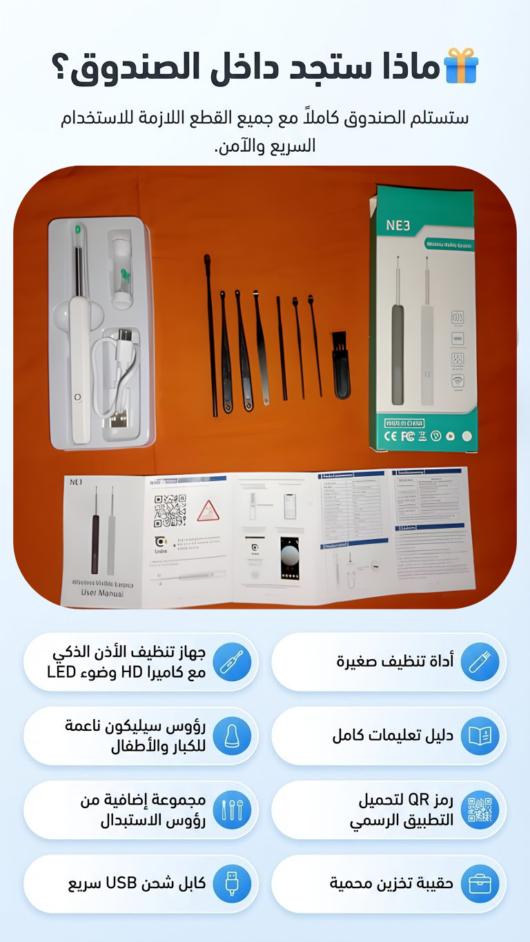 طقم تنظيف الأذن الذكي NE3: الحل العائلي لي يخلي ودانك ووذان ولادك صافية و بأمان